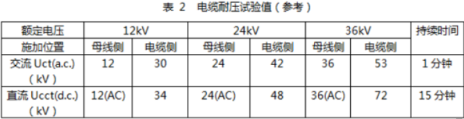 在與電纜連接的每一極上依次施加額定電纜試驗電壓Uct(a.c.)或Uct(d.c.), 其他非試極電纜應接地。a)與b)的試驗電壓應同時施加。