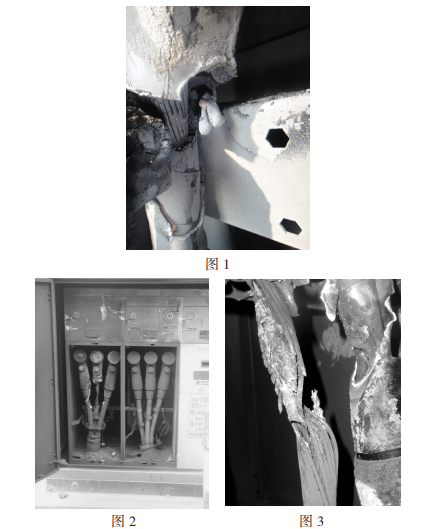 2009215日,回南天,仙村站孔堂線在經歷了長達18分鐘的間歇性接地后速斷跳閘,重合不成功,K5013-0003X電纜分支箱601開關B相進線電纜終端應力錐處首先短路燒毀(如圖2)。據分支箱附近商鋪店主反映,箱內曾繼續宣布嘩啪的響聲并冒煙,終究傳出爆炸聲音。經開始剖析,事端原發點為B相應力錐尾部,因為密封不嚴,硅脂固化,在運轉環境濕度較大的情況下呈現凝露,水氣進入纜芯,導致絕緣強度破壞產生爬電。終究由間歇性接地發展到三相短路(如圖3)。此次故障相同導致分支箱氣室破損泄漏,分支箱報廢。