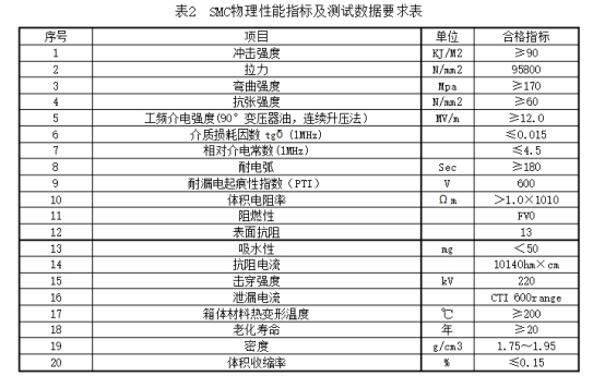 2.3.1分支箱外殼選用S304不銹鋼材料,箱體、門體材料厚度均不該小于2毫米,或SMC復合材料箱體,SMC物理功用目標及測試數(shù)據(jù)滿意表2的要求。