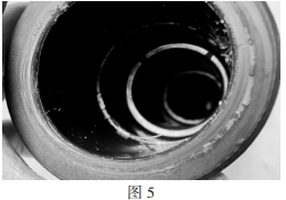 事端分支箱電纜終端所運用的硅脂密封功用不良,故障發生后,當拆撥其它兩相電纜頭時,由于硅脂出現干枯粘結(如圖5),需求多人合力才華撥出,可見硅脂已不能起到光滑防潮與絕緣的效果,不能與電纜頭同“呼吸”,彈性功用大為下降。