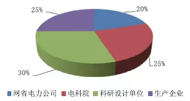 本著為電力行業打開效力的繩尺,本次查詢網省電力公司占比20%,電科院占比25%,科研規劃單位占比30%,消費企業占比25%。如圖所示。