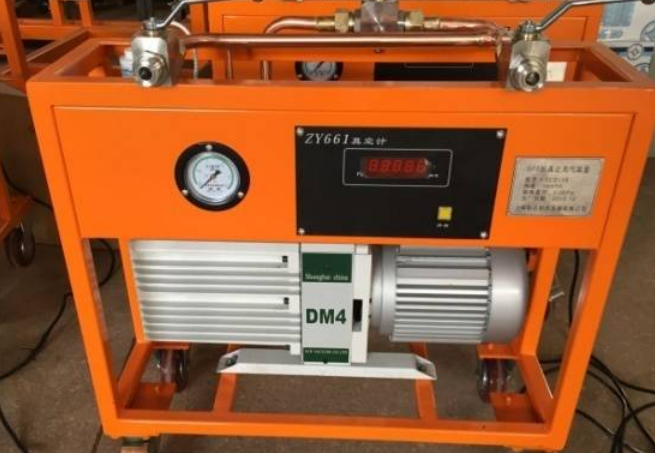 4)最有效最專業(yè)的方法,是SF6抽真空補氣裝置,單級旋片泵極限真空度可以達到10Pa,雙級旋片泵理論極限真空度可達到6.2*10-4pa,但是流量不大于100m3/h;