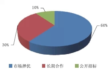 經(jīng)過調(diào)研,所查詢參與者單位對(duì)固體絕緣環(huán)網(wǎng)柜產(chǎn)品經(jīng)過商場(chǎng)擇優(yōu)的占比60%;長(zhǎng)期協(xié)作的占比30%;聯(lián)盟無;揭穿投標(biāo)的占比10%。具體如下圖3所示。
