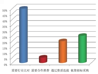 在被調(diào)研目標(biāo)在本單位選購產(chǎn)品辦法的選擇上,認(rèn)為需求工作比對(duì)的占比50%;需求協(xié)作推薦的的占比5%;經(jīng)過資質(zhì)選拔的占比20%;依托投標(biāo)收買的占比25%。如圖11所示。