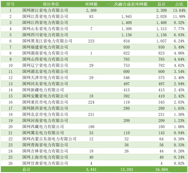 2020年度,國網范圍共有26個省電力公司有安排環網箱產品招標,通過各種招標方式產生了16,930臺需求。