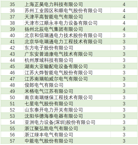 3國網環網箱中標企業的中標包數量(中標包數超過3個部分)
